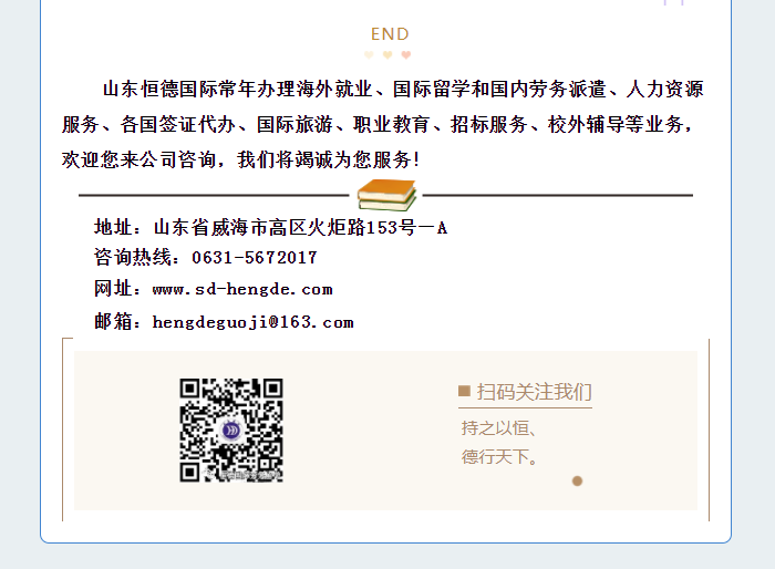 版權(quán)所有:山東恒德國際經(jīng)濟(jì)技術(shù)合作有限公司 威海恒德職業(yè)培訓(xùn)學(xué)校 地址:威海市高區(qū)火炬路153號-A 免費(fèi)熱線:4006150009電話:(韓國部)+86-631-5672008(日本部)+86-631-5672006 (新加坡)+86-631-5672009 (留學(xué)部)+86-631-5672011 傳真:+86-631-5672028 郵 編:264209 郵箱:hengdeguoji@163.com51La| 策劃制作:威海雷迅網(wǎng)絡(luò) 魯ICP備19060589號-1 魯公網(wǎng)安備 37100302000191號